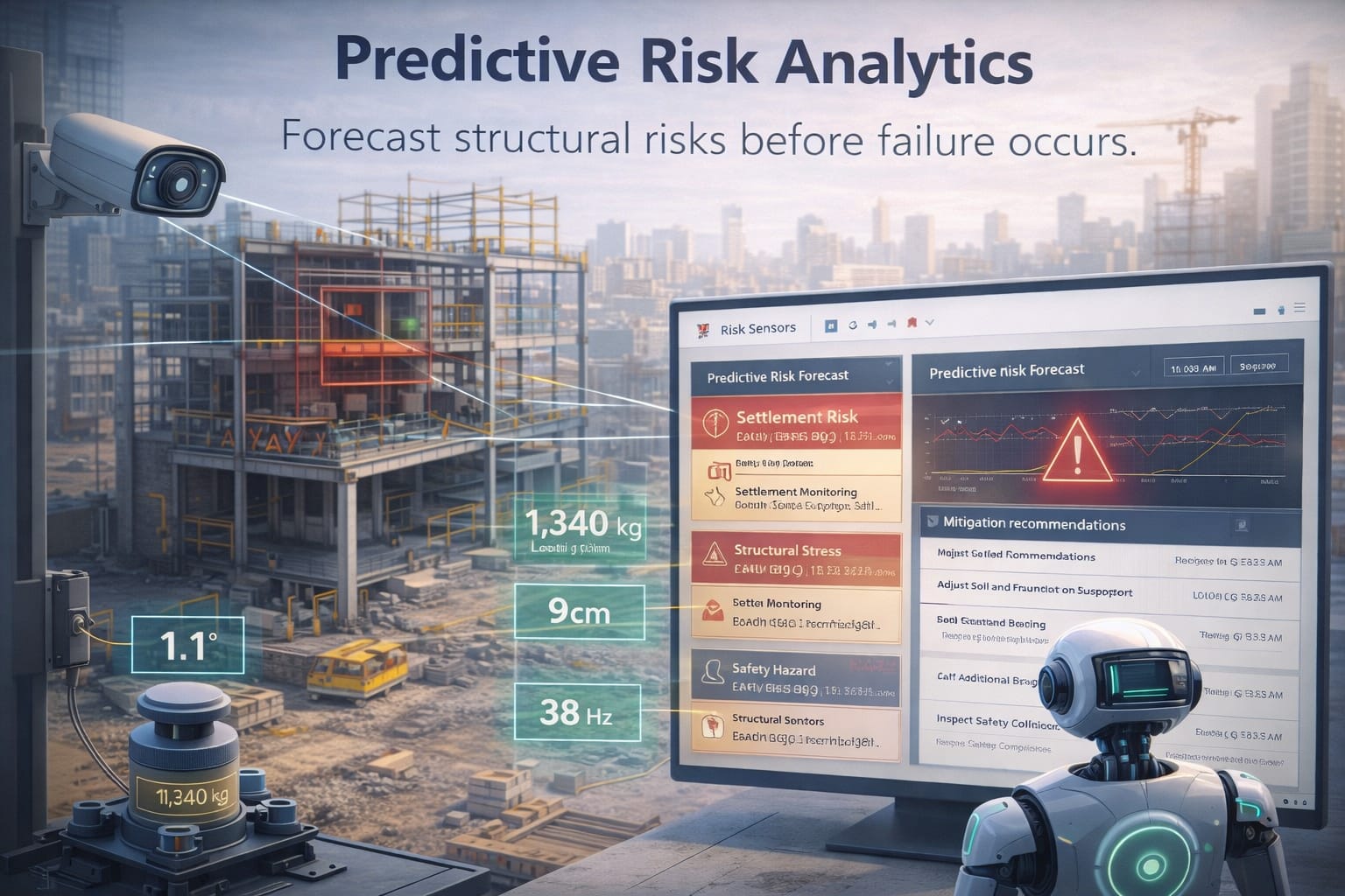 The platform analyzes data from site cameras and structural sensors to detect deviations, monitor safety conditions, and generate real-time alerts for engineers and project managers.